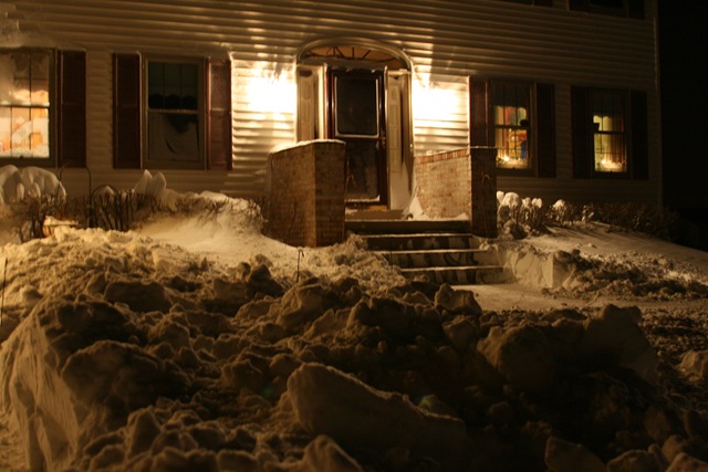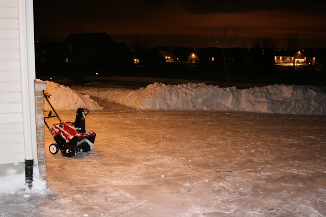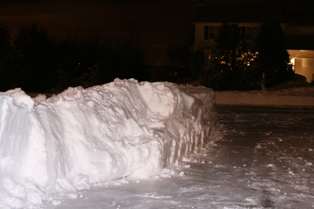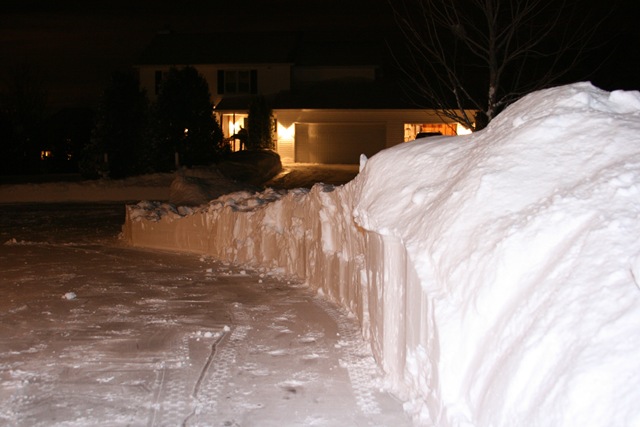 During a pause in the storm Wednesday night, the girls and I were able to clear the driveway. If there ever was a time for a two-stage snow blower, this was it. My single-stage Toro performed admirably, but it was all I could do to get the snow over the piles.